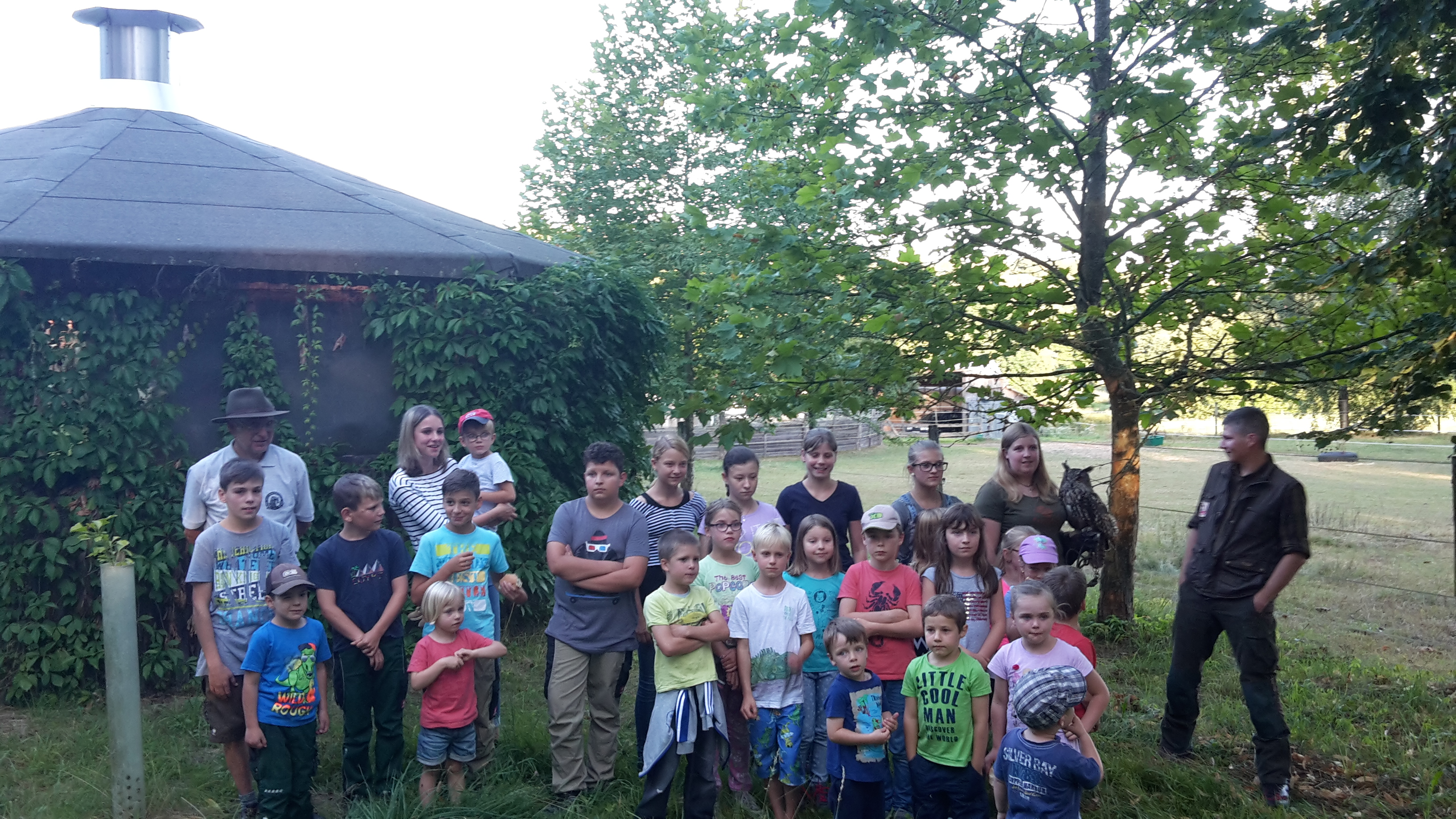 Begleitet von Uhu "Hannes" und ausgerüstet mit Taschenlampen haben sich knapp 30 Kinder und Jugendliche im Raffelshof bei Wehlmäusel auf einen Pirschgang gewagt. Jagtpächter Manfred Hartnagel hat sich ein spannendes Programm für die Buben und Mädchen ausgedacht.